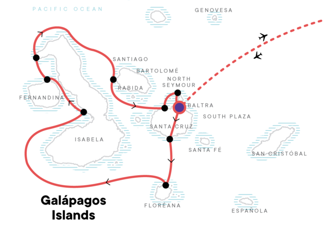 Flights to either of the airports in the Galapagos leave early in the morning on Day 2 and get you into the islands in the early afternoon. Flights back to the mainland depart between 10:00am and 1:30pm arriving in the early evening.