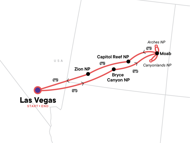 Take the short drive from Zion to Las Vegas. Tour ends on arrival. Onward travel should be booked no earlier than 3pm.