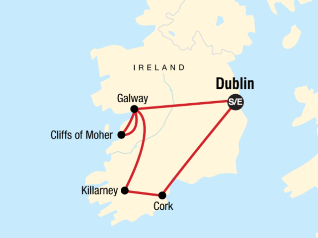 Your Discover Moment: Dublin. Visit to Trinity College Dublin. Blarney Castle visit. Ring of Kerry day excursion. Galway City walking tour. Cliffs of Moher cruise and visitors' center stop. Cork orientation walk. All transport between destinations and to/from included activities.